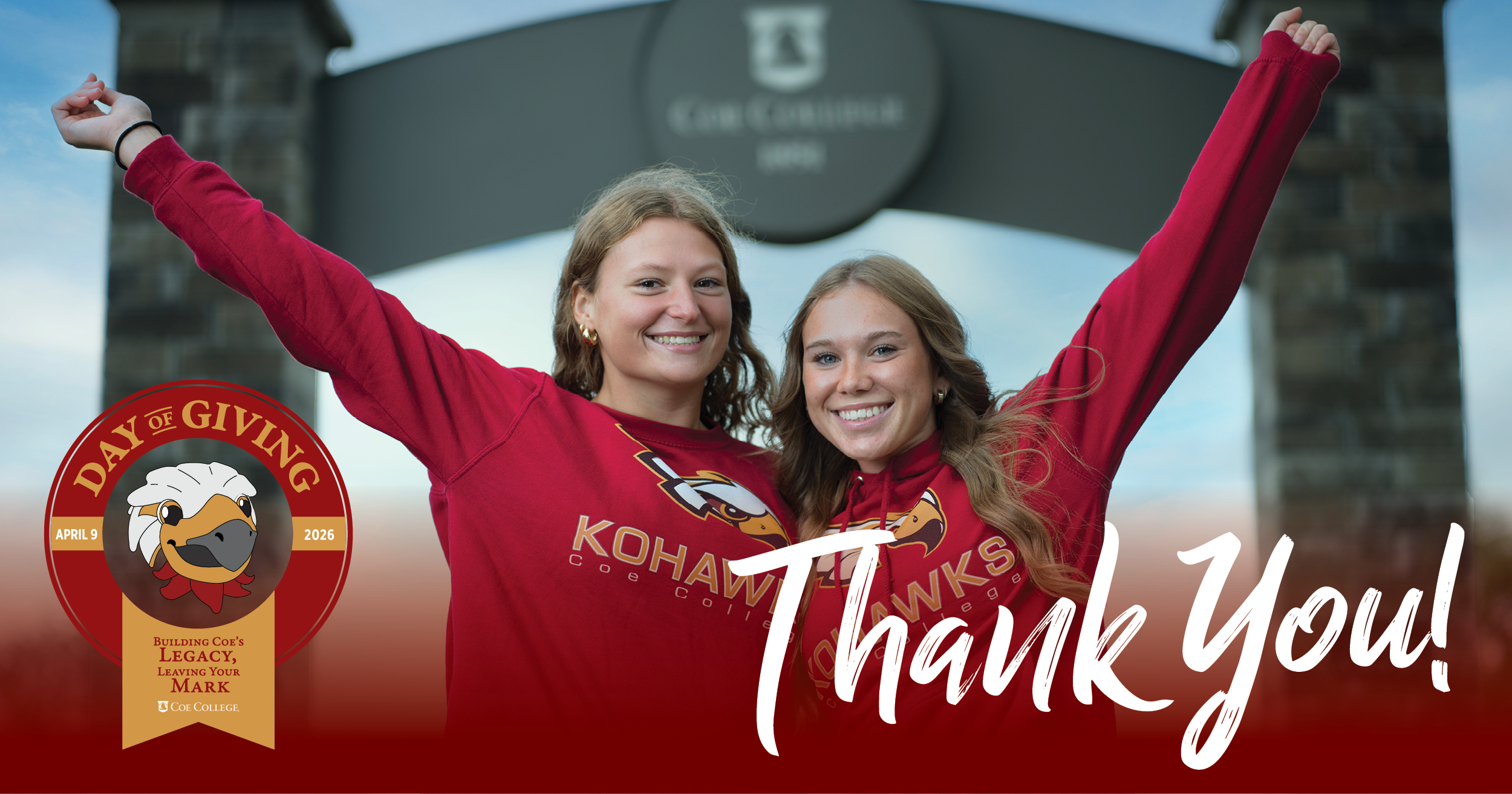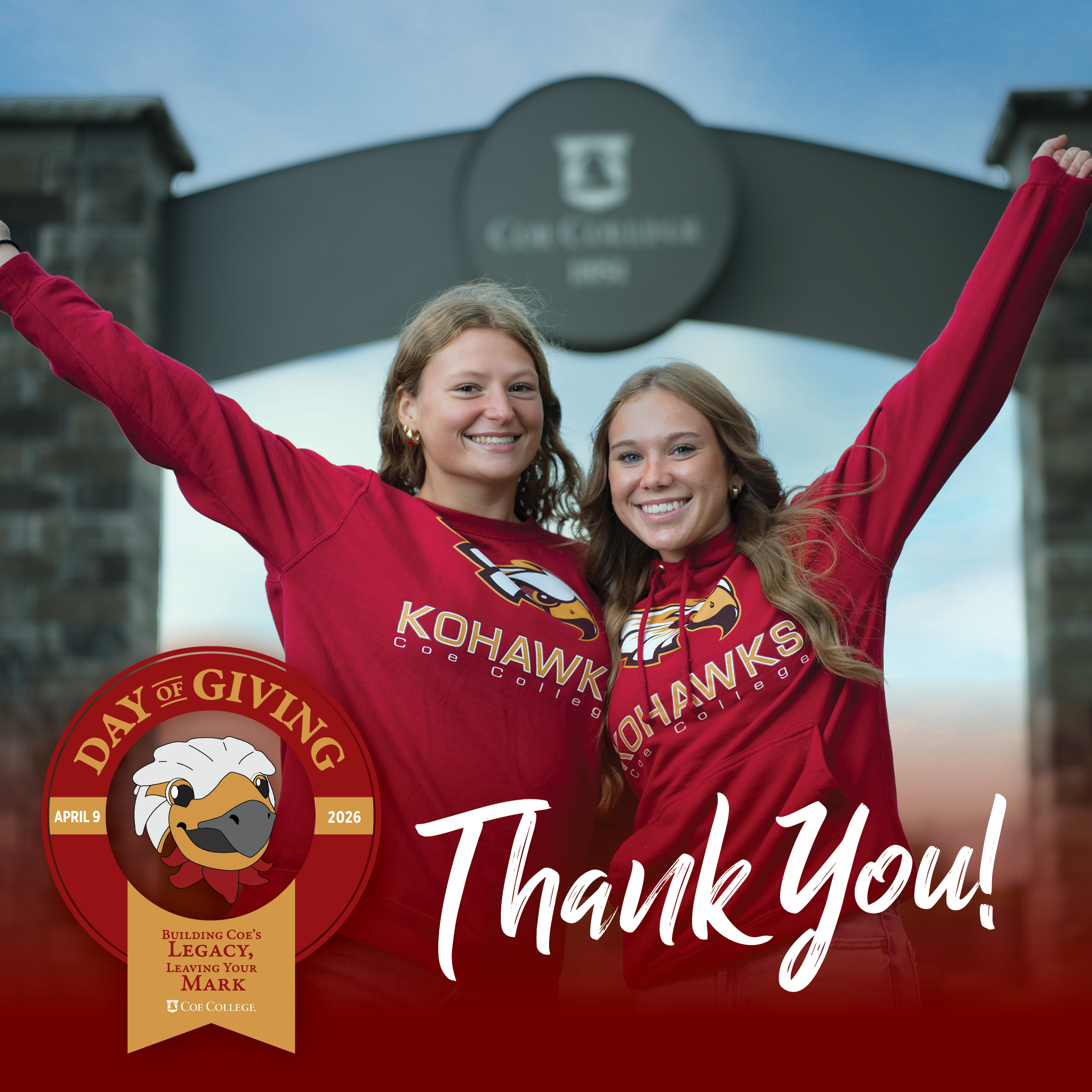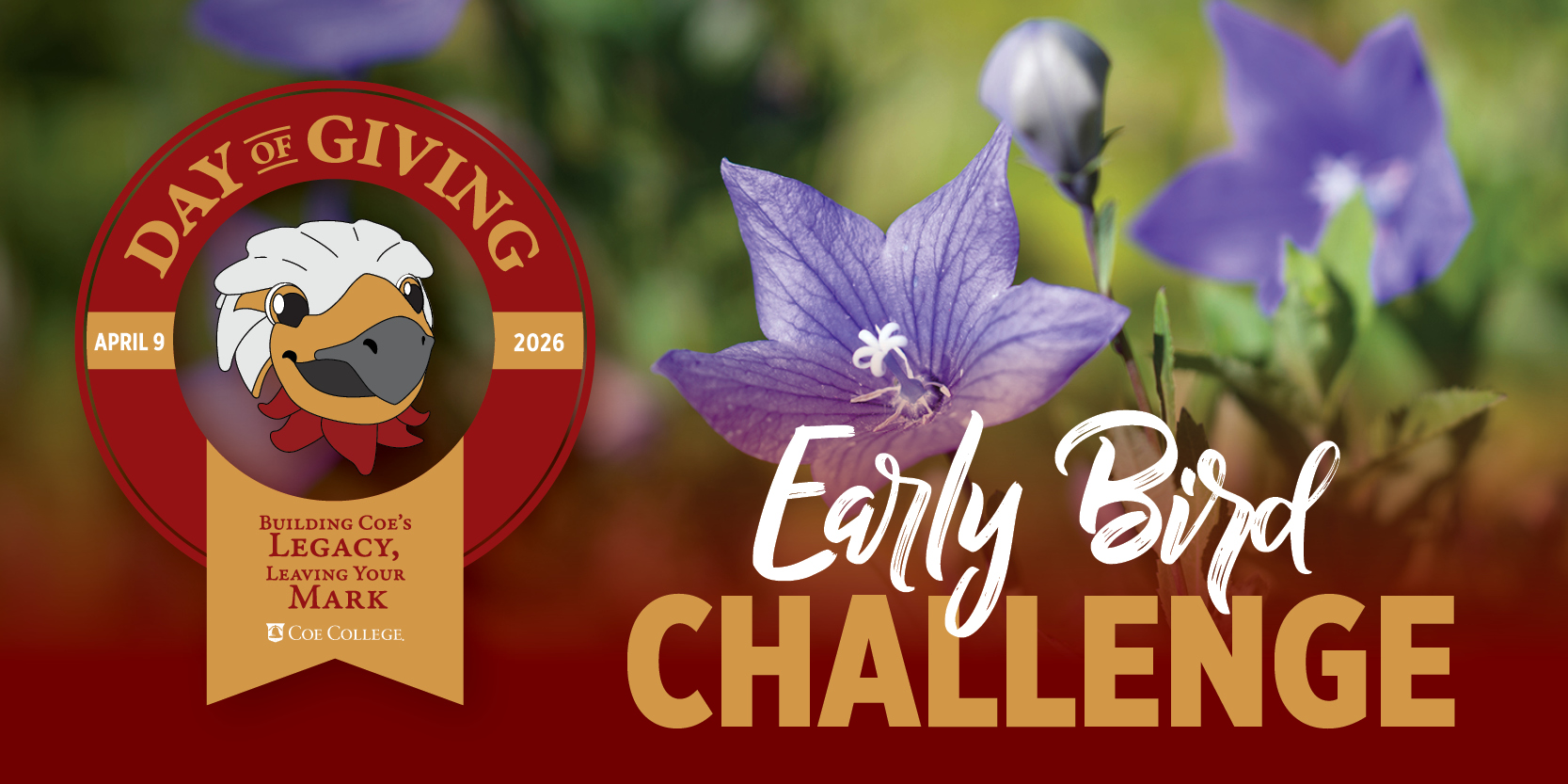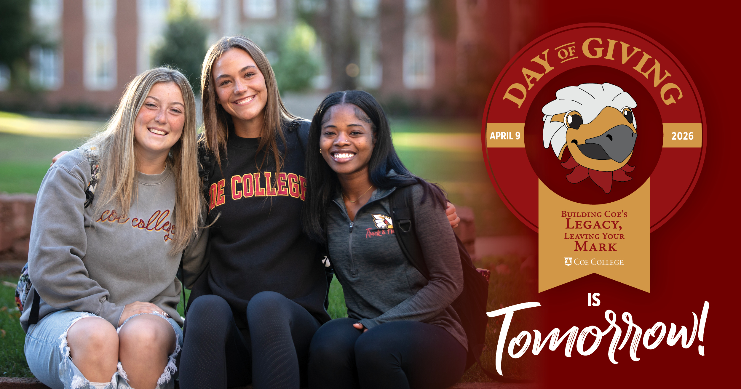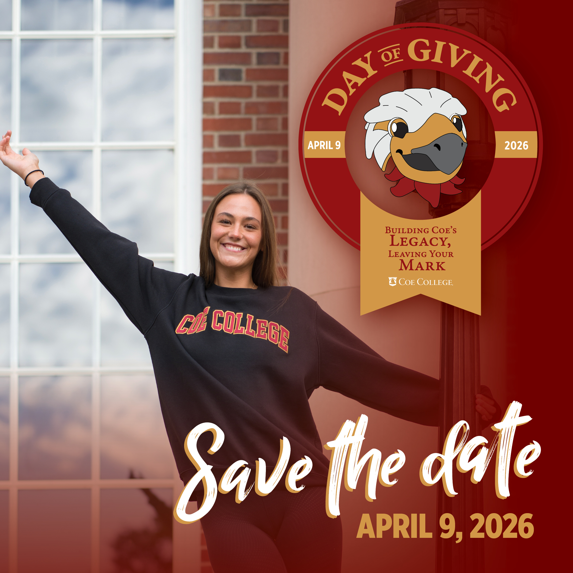 Join us on April 9, 2026, as we celebrate 12 years of generosity and continue building Coe's legacy together. This year, we invite you to leave your mark and help shape the next century of impact for Coe students and our community.