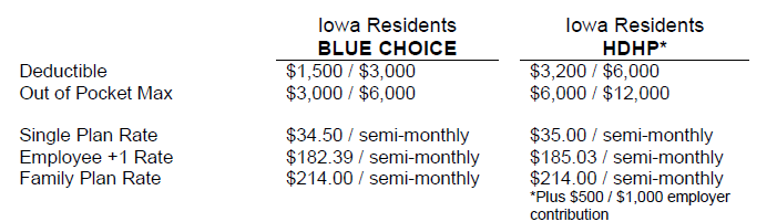 - Family Plan Coverage (Employee contribution): $9.20/semi-monthly